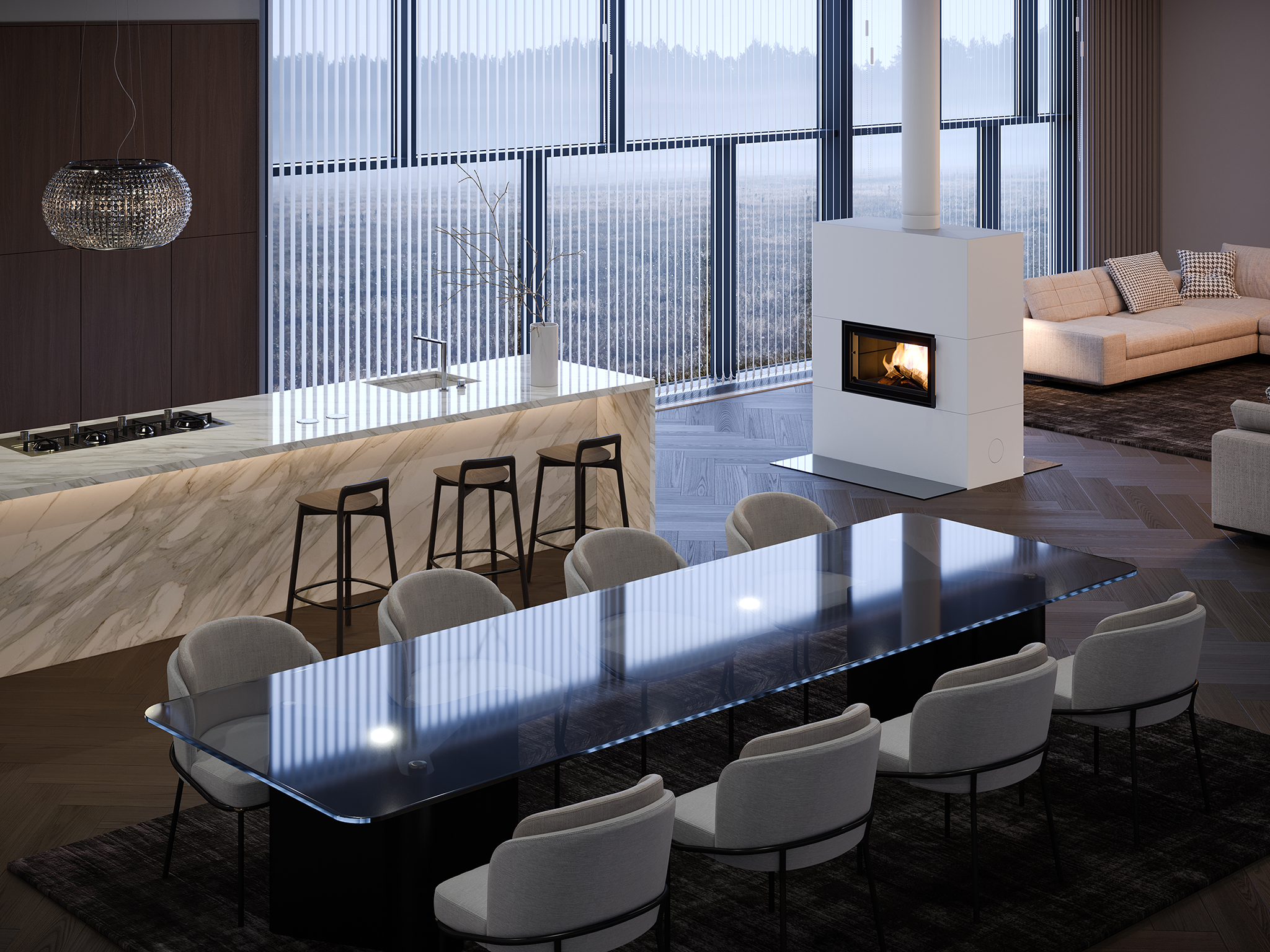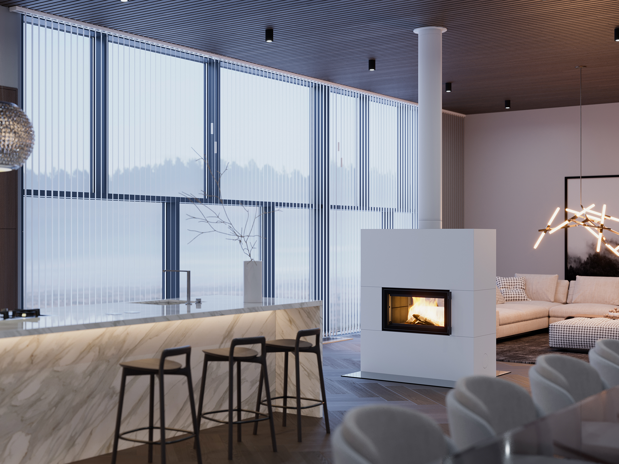 Saramo 2D Trio Color – это стильный камин из мыльного камня внутри и искусственным высококачественным камнем снаружи и широкой горизонтальной топкой с двух сторон. Благодаря этому печь можно поставить для разграничения помещения на зоны и огонь будет виден из каждой зоны. Высота камина может быть выбрана в соответствии с пространством из трех стандартных высот, а в качестве поверхностей доступны новые черно-белые поверхности с разными текстурами; натуральный матовый сатин, слегка шершавая структура и глянцевый люкс (только в белом цвете).
