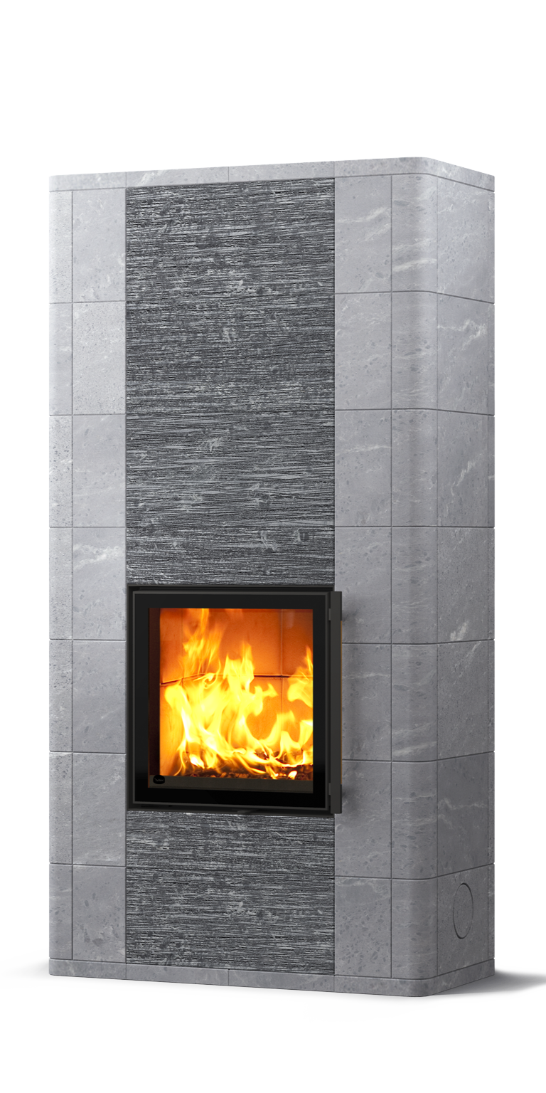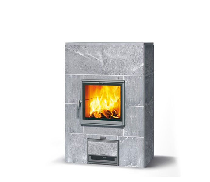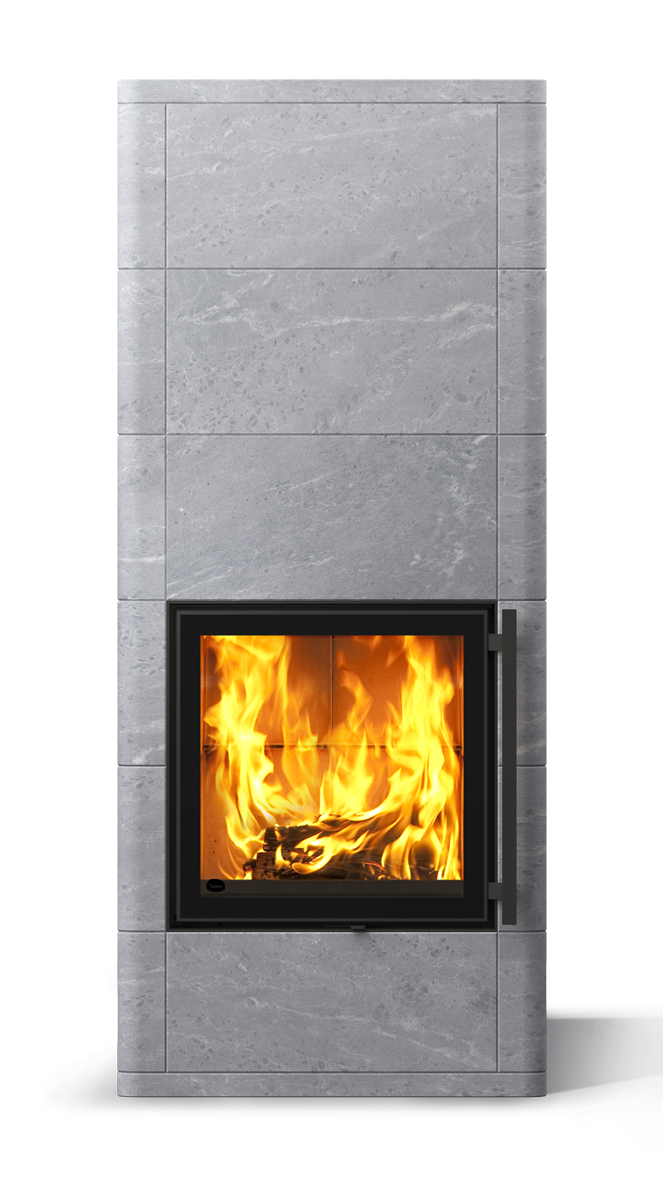 Классическая модель, без вихревой топки, с панорамными чугунными дверцами для лучшего обзора огня. Отсутствие вихревой топки (конструкция печи и топка сделана из камня Туликиви) + упрощенный дизайн (нет полочек и верхнего яруса) позволили сделать на нее отличное ценовое предложение